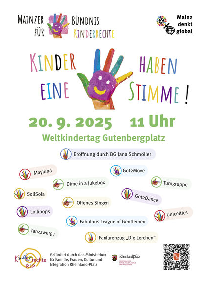 Auch das Mainzer Bündnis für Kinderrechte setzt sich für die Verbesserung und Verankerung von Kinderrechten, für ihren Schutz und die Verbesserung ihrer Lebensbedingungen ein. Mit einer Veranstaltung wie dem Weltkindertag soll die Öffentlichkeit über die Notwendigkeit sich auch hier in Mainz mit den Kinderrechten auseinanderzusetzen, informiert werden.